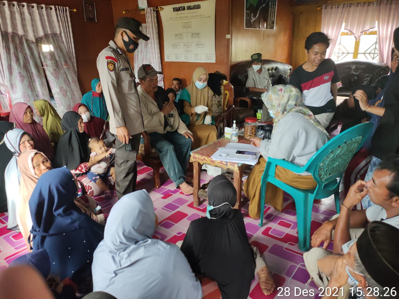 Didepan warga, Bhabinkamtibmas Bripka Jalil juga menyampaikan arahan bagi warga yang belum vaksin akan mengalami kendala diberbagai kebutuhan administrasi negara kepengurusan surat- surat di pemerintahan.