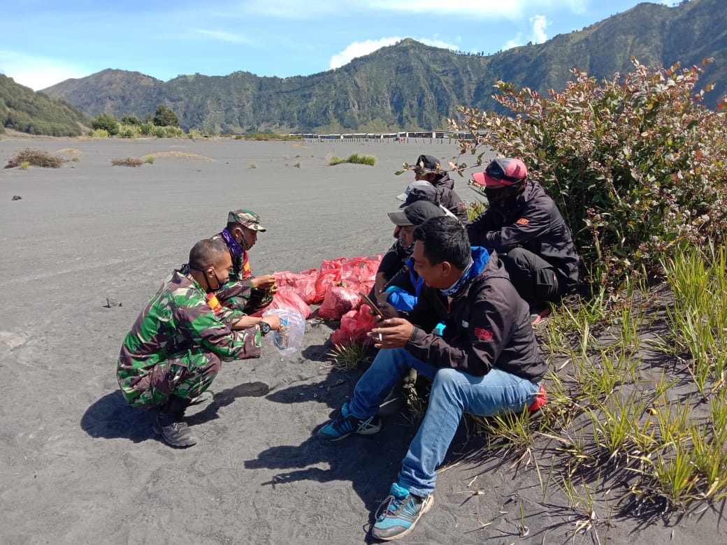 PENJURU.ID | Probolinggo – Perduli terhadap lingkungan di wilayah kawasan Bromo setelah hari Yadnya Kasada Babinsa Koramil 0820/08 Sukapura bersama komunitas masyarakat Tengger dan Hotel membersihkan sampah.