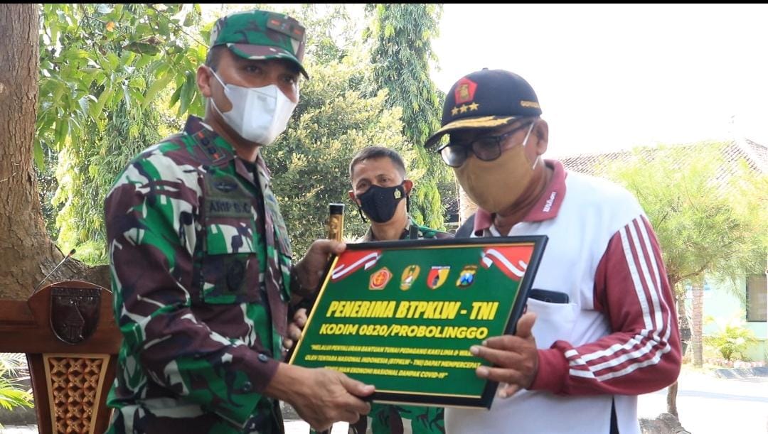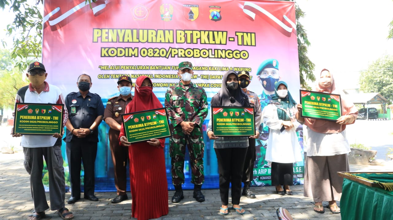 PENJURU.ID | Probolinggo – Dalam rangka untuk mempercepat pemulihan ekonomi nasional yang diakibatkan oleh dampak COVID-19 maka Kodim 0820/Probolinggo, melaksanakan penyaluran BTPKLW ( Bantuan tunai pedagang kaki lima dan warung ) Yang berada di kota Probolinggo.