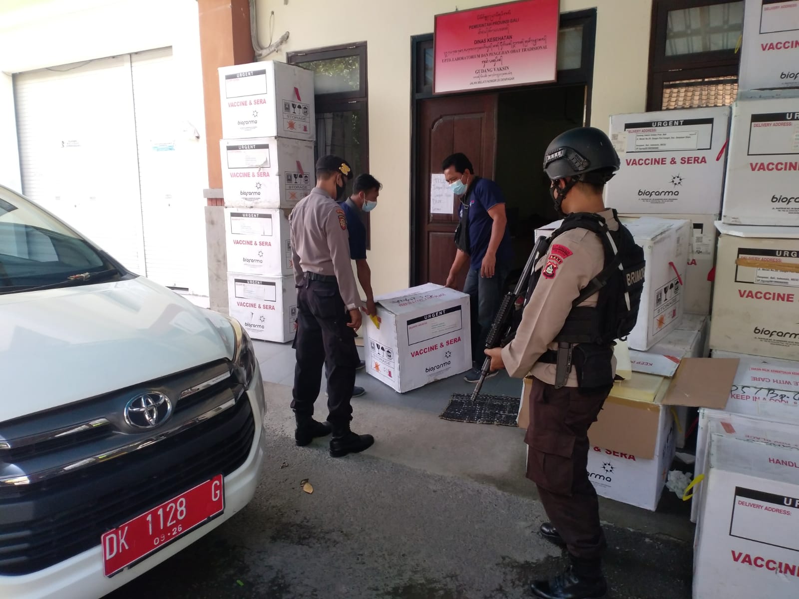 Dengan menggunakan dua Kendaraan Roda empat. Pengawalan Vaksin dipimpin Ipda I Ketut Padnya berlangsung dari Gudang Dinas Kesehatan Provinsi Bali untuk didistribusikan ke Kabupaten Tabanan. Dalam Pengawalan tersebut penjemputan Vaksin jenis Vaksin astrazeneca tersebut menyertakan dua petugas dari Dinas Kesehatan Kabupaten Tabanan. Ucap Kasat Samapta Polres Tabanan.