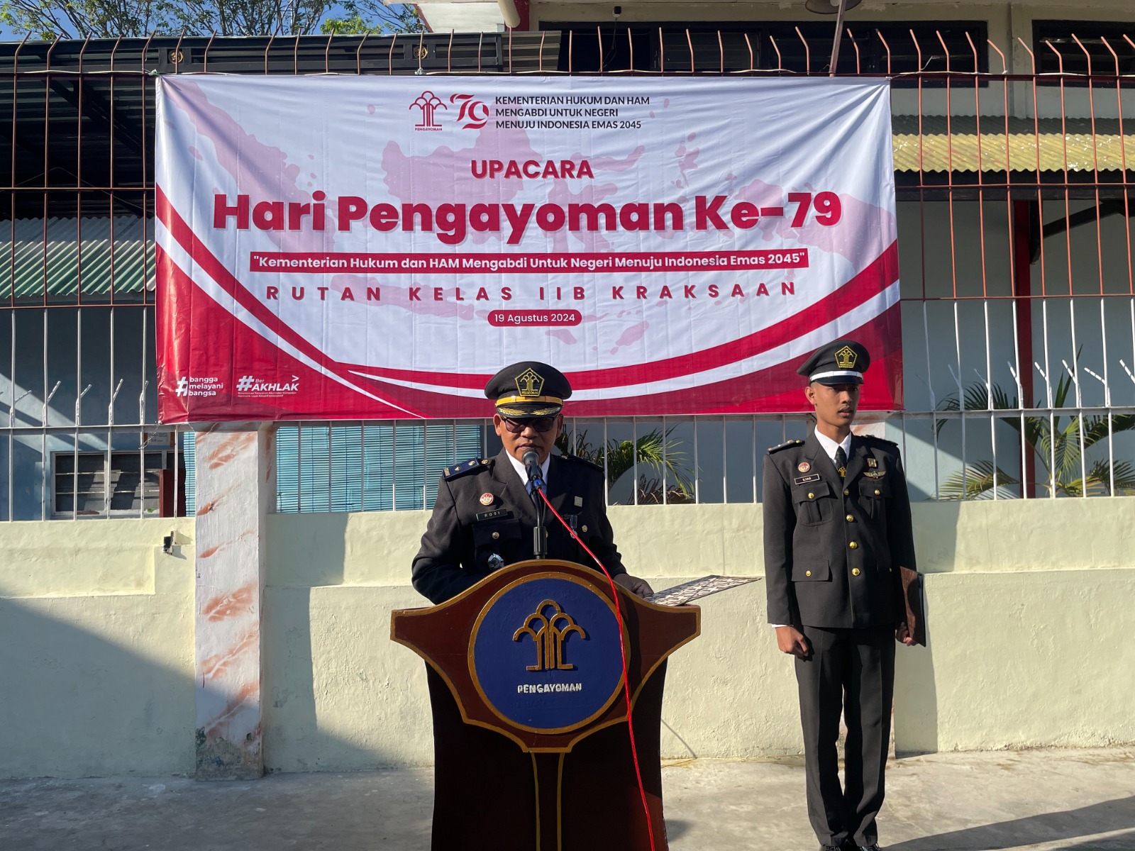 Upacara yang mengusung tema “Kementerian Hukum dan HAM Mengabdi untuk Negeri Menuju Indonesia Emas 2045” ini diikuti oleh seluruh warga binaan serta jajaran petugas Rutan Kraksaan.