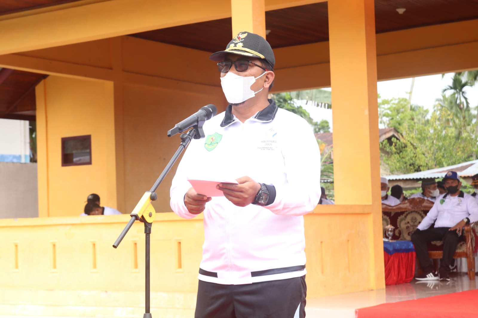 PENJURU.ID | TAPSEL-Wakil Bupati (Wabup) Tapanuli Selatan (Tapsel), Rasyid Assaf Dongoran, M.Si, menjadi inspektur upacara (Irup) pada peringatan Hari Olahraga Nasional (Haornas) ke-38 Tahun 2021 di Lapangan Sarasi II Pintu Padang, Kecamatan Batang Angkola, Kabupaten Tapsel, Rabu (3/11).