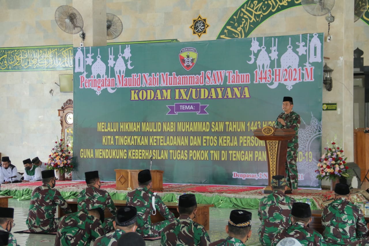 Pada acara yang digelar oleh Kodam IX/Udayana tersebut, Pangdam meyampaikan bahwa peringatan Maulid Nabi agar dijadikan momentum yang tepat untuk merayakan keteladanan Rasulullah, dalam hal kekuatan aqidah dan ibadah. Rasulullah menjadikan Masjid sebagai pusat pembinaan aqidah, pembinaan ibadah, pembinaan umat dengan berbagai latar belakang sosial budayanya.