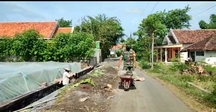 PENJURU.ID | Probolinggo – Koramil 0820/03 Leces bersama warga Dusun Gul Gulan Desa Leces, Kecamatan Leces, Kabupaten Probolinggo gotong rotong melaksanakan kerja bakti berupa pembangunan saluran irigasi.(6/2/23)