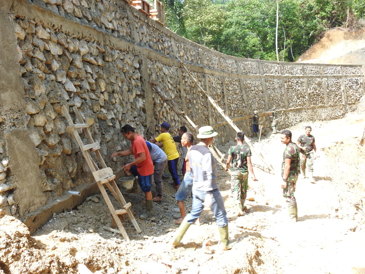 Pengerjaan stabilisasi lereng bukit, panjang 41 meter tinggi tujuh meter, merupakan sasaran pokok penting Infrastruktur jalan akses dua Desa dalam TNI Manunggal Membangun Desa (TMMD) Reguler 108 Kodim 0117/Aceh Tamiang, dikatakan sudah 65%. Pembuatan stabilisasi lereng bukit untuk menahan salah satu di titik jalan 900 meter yang akan menopang jalan tembus antara Desa Seumadam-Rimba Sawang.
