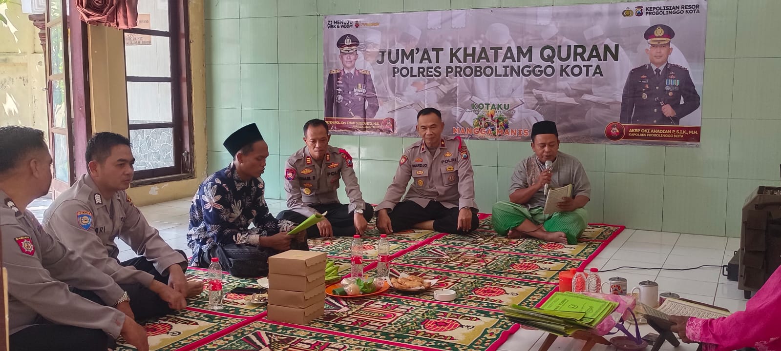 PENJURU.ID | Probolinggo – Perkuat keimanan dan ketakwaan anggota, Polres Probolinggo Kota serta polsek jajaran mengadakan kegiatan khataman Al Qur’an yang dilaksanakan secara rutin setiap hari Jumat pagi. Kegiatan ini, merupakan program dari Kapolres Probolinggo Kota AKBP Oki Ahadian.