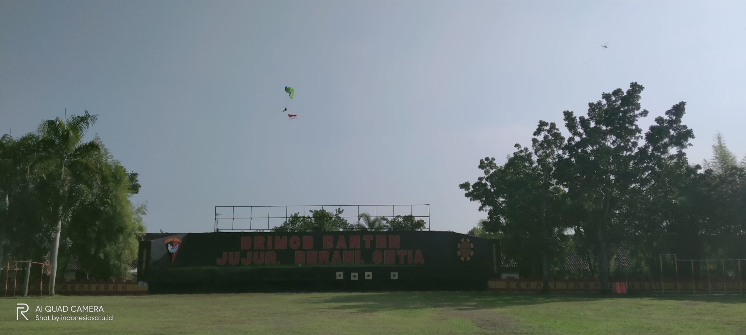 Aksi pengibaran yang menggunakan paramotor tersebut dilakukan oleh Brigadir Ari Prayogo anggota Den Gegana Brimob Banten yang juga sebagai atlit paralayang yang lepas landas di kawasan perumahan Citraland Ciracas Kota Serang dan mendarat di lapangan Hijau Mako Brimob Banten.