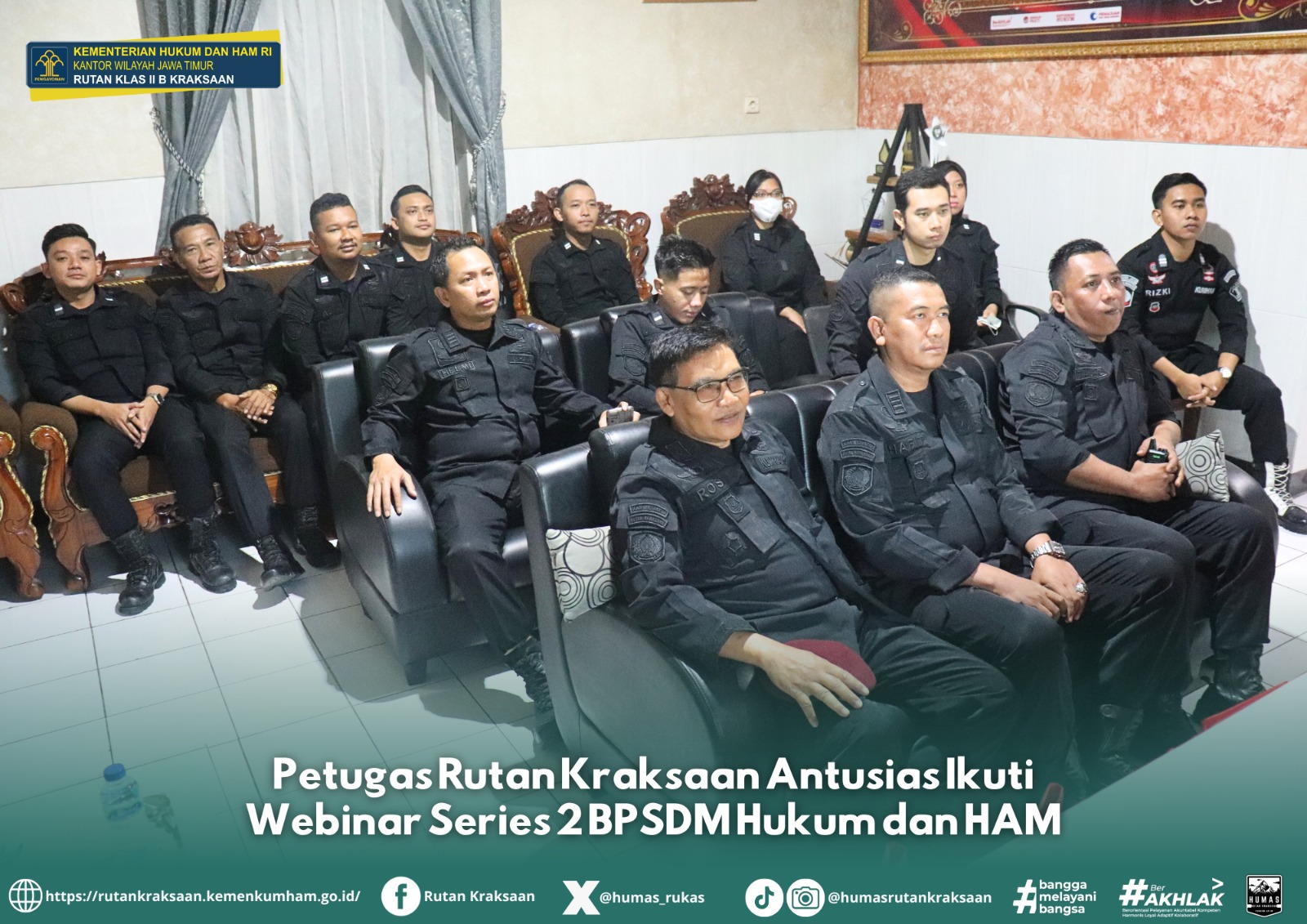 PENJURU.ID | Probolinggo – Jajaran petugas Rutan Kelas IIB Kraksaan Kanwil Kemenkumham Jatim mengikuti Webinar Series 2 yang diselenggarakan oleh Badan Pengembangan Sumber Daya Manusia (BPSDM) Hukum dan HAM, dengan tema “Karier dan Kinerja Jabatan Fungsional Sebagai Penggerak Pembangunan ASN BerAkhlak”. Webinar ini menghadirkan Plt. Deputi Bidang SDM Kemenpan RB, Aba Subagja, S. Sos., MAP., sebagai pembicara utama. Kegiatan diawali dengan laporan kegiatan dari Dr. Ceno Hersusetiokartiko, Kepala Pusat Pelatihan dan Pengembangan Fungsional dan HAM. Kamis (29/08).