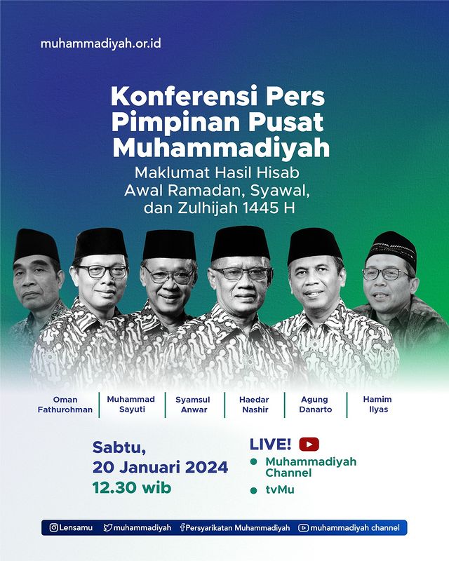 Penjuru.id | Jakarta – Pimpinam Pusat Muhammadiyah, menggelar konferensi Pers pada Sabtu, 20 Januari 2024, mengumumkan tanggal-tanggal kunci untuk awal Ramadan, Idul Fitri, dan awal Zulhijah dalam kalender Islam tahun 1445 H.