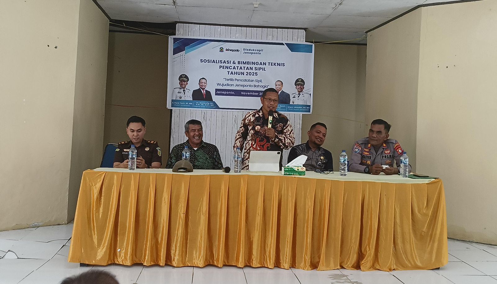 PENJURU.ID | Jeneponto – Pemerintah Kabupaten Jeneponto terus mendorong peningkatan kualitas data kependudukan sebagai dasar pengambilan kebijakan yang akurat. Melalui Dinas Kependudukan dan Pencatatan Sipil (Disdukcapil), Pemkab Jeneponto menggelar Sosialisasi dan Bimbingan Teknis (Bimtek) Pemutakhiran Data Kependudukan di Aula Kantor Kecamatan Binamu, Kamis (6/11/2025).
