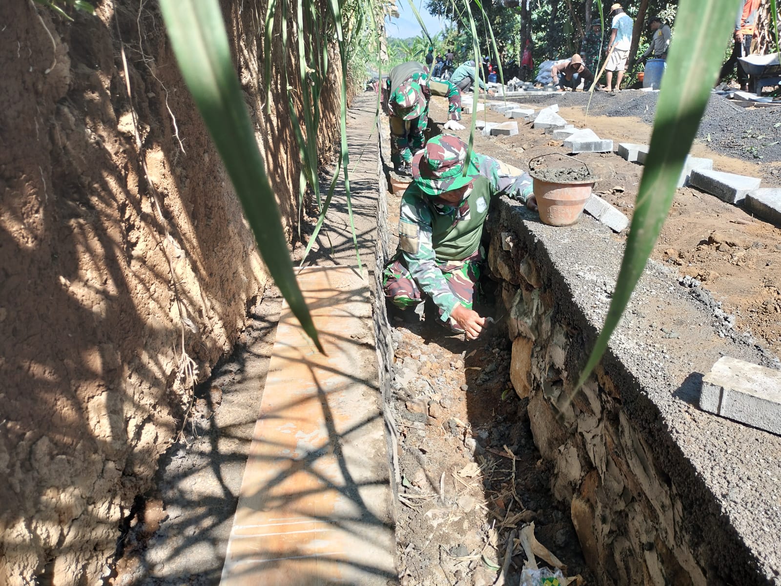 PENJURU.ID | Probolinggo – Pembangunan plengsengan di Dusun Cocok, Desa Kalianan, Kecamatan Krucil, Kabupaten Probolinggo dalam program TNI Manunggal Membangun Desa (TMMD) ke 121 Kodim 082O Probolinggo tahun 2024 hampir rampung.