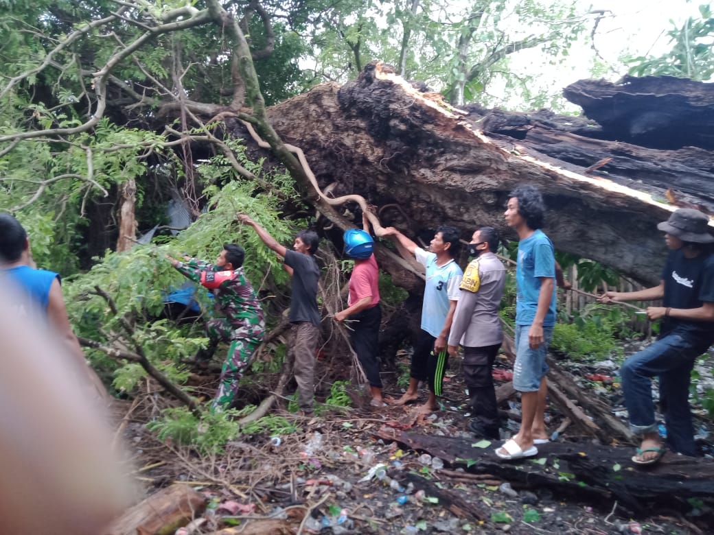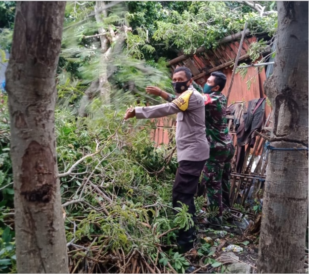 Adanya kejadian itu, Bhabinkamtibmas Kelurahan Biringkassi Kecamatan Binamu Kabupaten Jeneponto, Bripka Kurniadi bersama Babinsa mendatangi rumah yang tertimpa pohon.