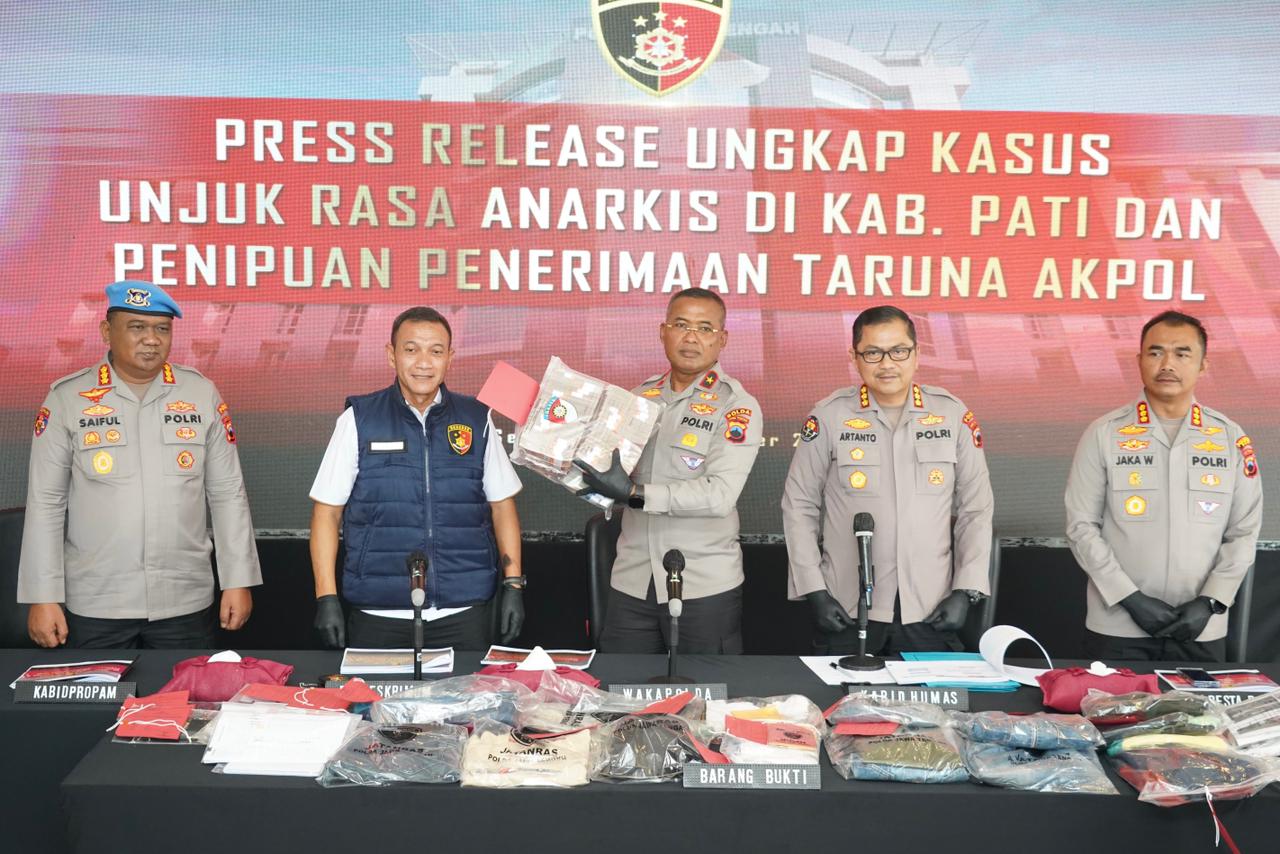 Semarang | Kepolisian Daerah Jawa Tengah mengungkap kasus penipuan bermodus penerimaan Taruna Akademi Kepolisian (Akpol) tahun 2025. Pengungkapan ini disampaikan dalam konferensi pers ungkap kasus menonjol yang digelar di lobi Mapolda Jateng, Rabu (5/11/2025) siang, dipimpin Wakapolda Jateng Brigjen Pol Latif Usman, didampingi Dirreskrimum Kombes Pol Dwi Subagio, Kabid Propam Kombes Pol Saiful Anwar, Kabid Humas Kombes Pol Artanto, dan pejabat utama lainnya.