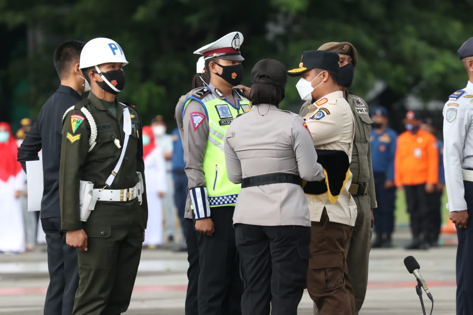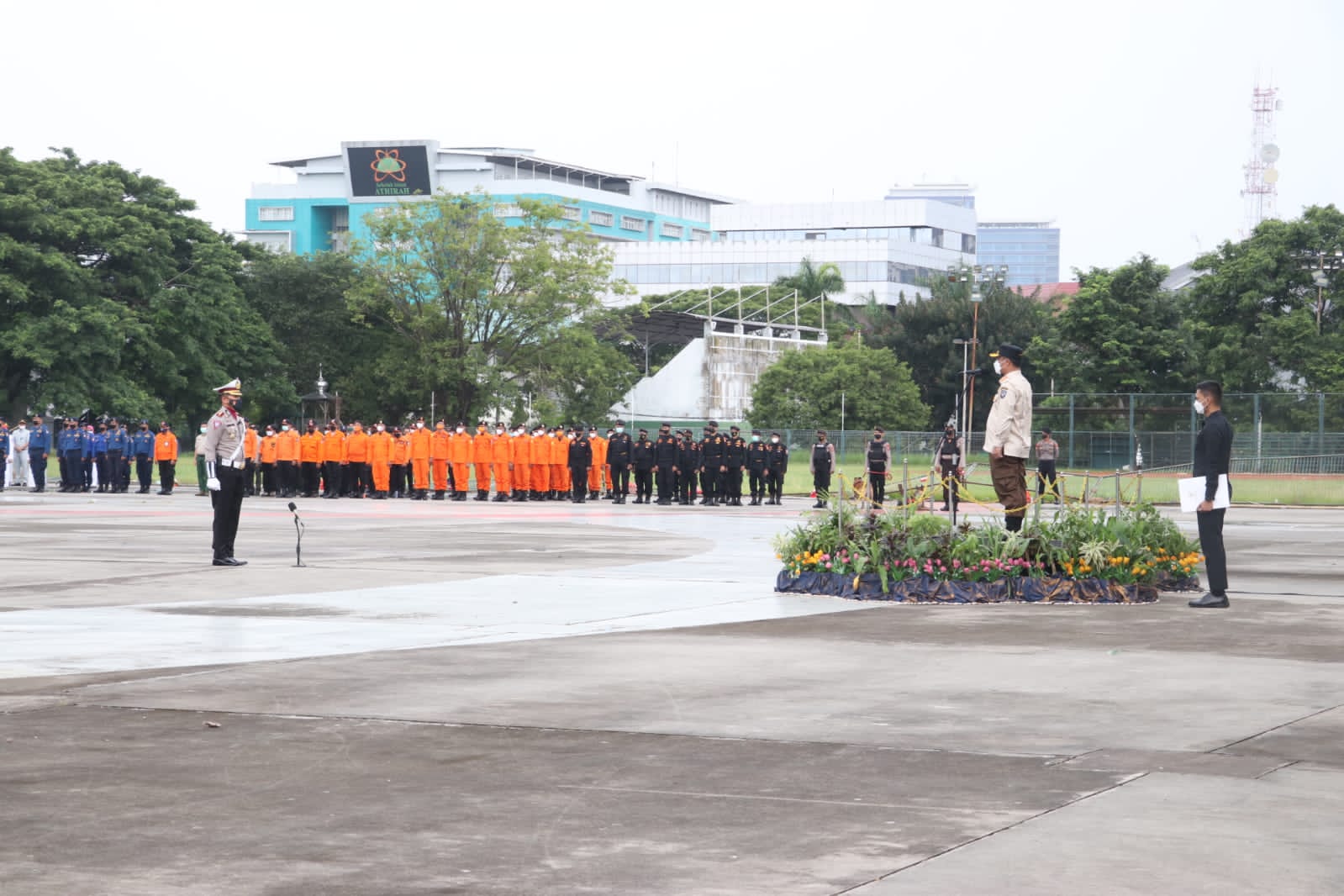 PENJURU. ID | Sulsel – Plt. Gubernur Sulsel Andi Sudirman Sulaiman bersama Kapolda Sulsel, Irjen Pol. Nana Sudjana, A.S. M.M. pimpin apel gelar pasukan dalam rangka Operasi Lilin 2021 di Lapangan Karebosi Makassar, pada Kamis (23/12/2021) pagi.