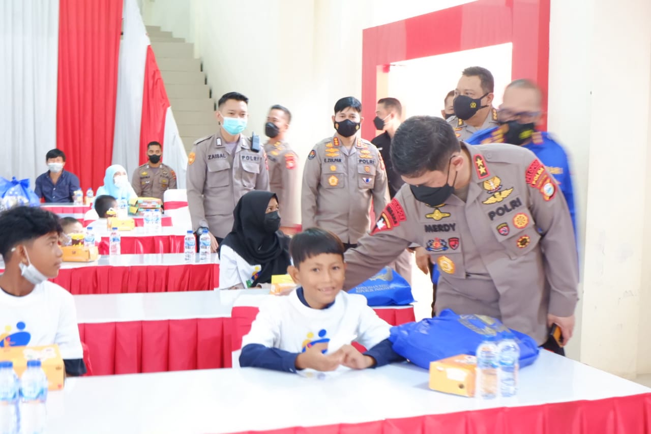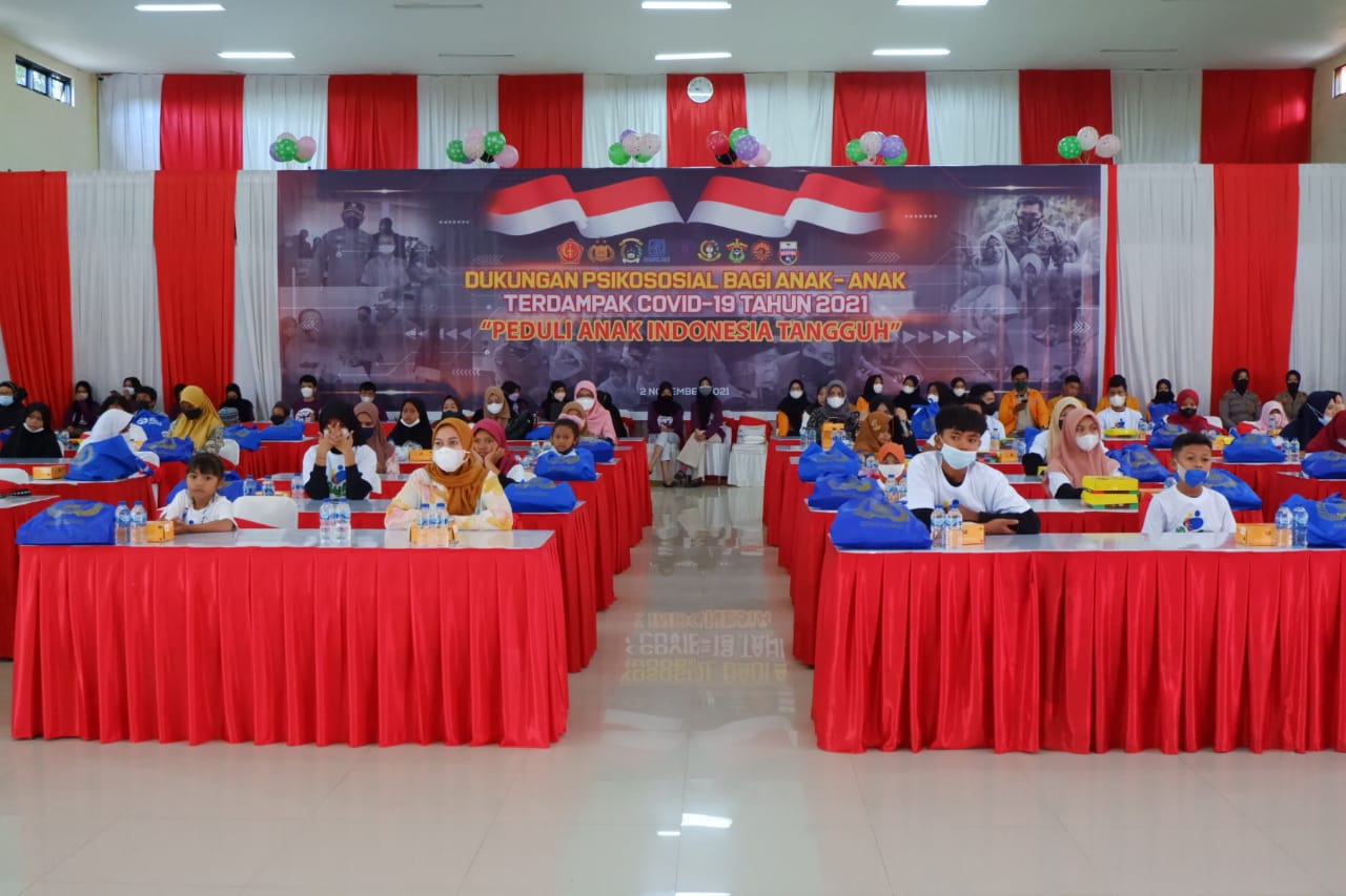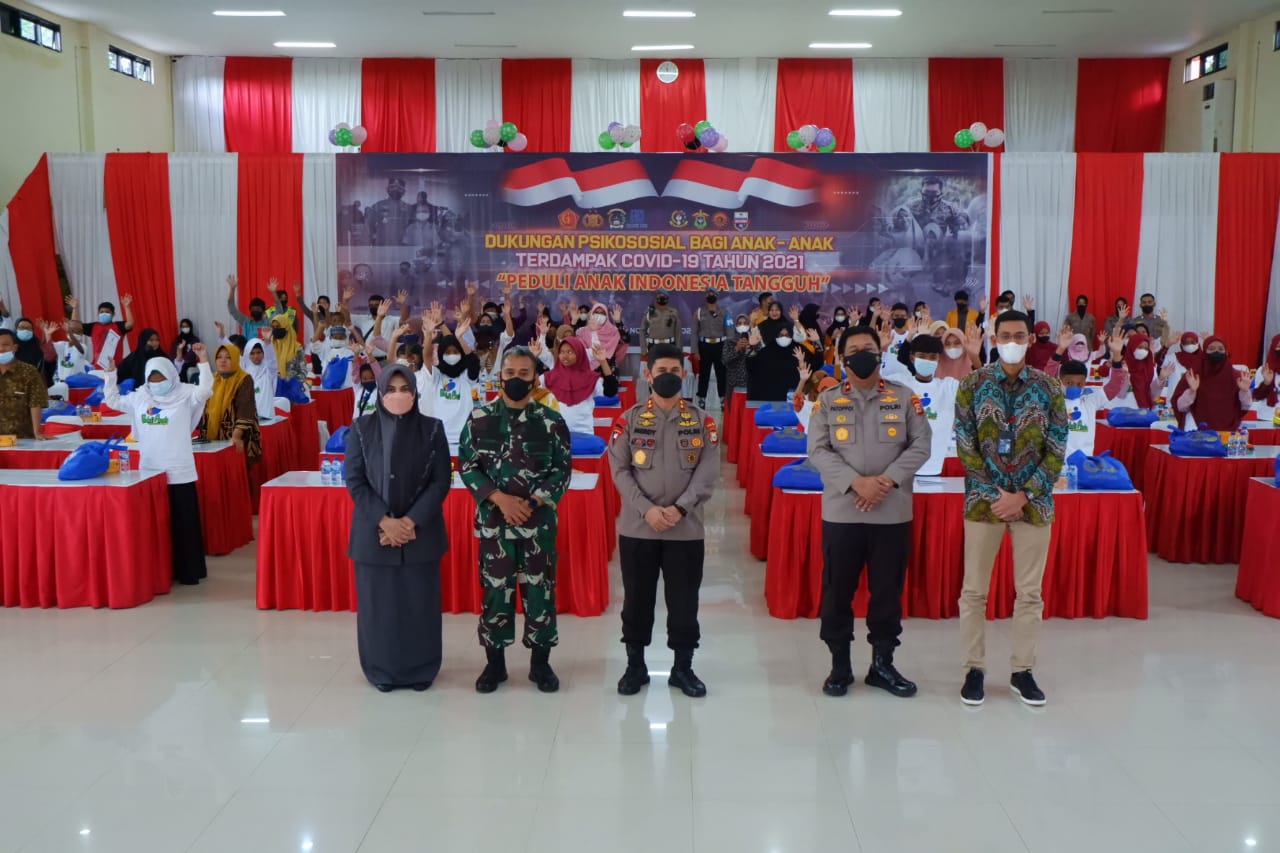 PENJURU. ID | Sulsel – Kapolda Sulsel Irjen Pol Drs. Merdisyam menghadiri Giat Dukungan Psikologis bagi anak-anak yang terdampak Covid-19 yang dilaksanakan di Aula Andi Mapppaoddang Mapolda Sulsel, Selasa (02/11/2021). Anak-anak ini merupakan yatim/piatu dimana orang tua mereka meninggal dunia akibat Covid-19.