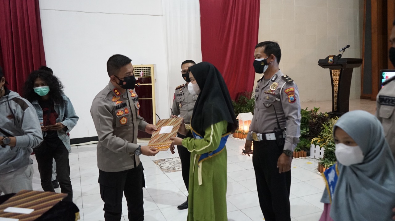 PENJURU.ID | Probolinggo – Sebanyak 59 anak yatim piatu yang ditinggal orang tuanya meninggal akibat Covid-19 di Kota Probolinggo diangkat menjadi anak asuh oleh anggota Polres Probolinggo Kota. Kegiatan ini diselenggarakan di Gedung Serba Guna Polres Probolinggo Kota. Jum’at (17/09/21).