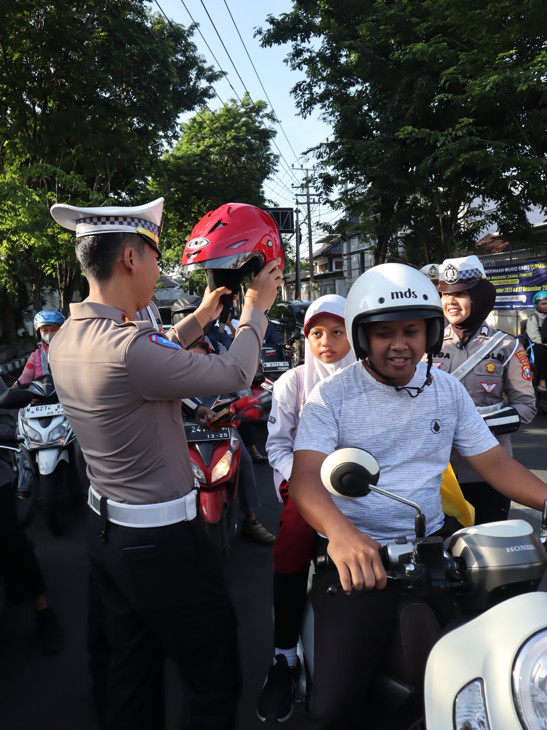 Hadiah yang dibagikan beragam. Mulai helm dewasa, helm anak, jas hujan, hingga bunga mawar. Semuanya diberikan gratis sebagai bentuk apresiasi dan upaya menanamkan memori positif tentang pentingnya tertib berlalu lintas.