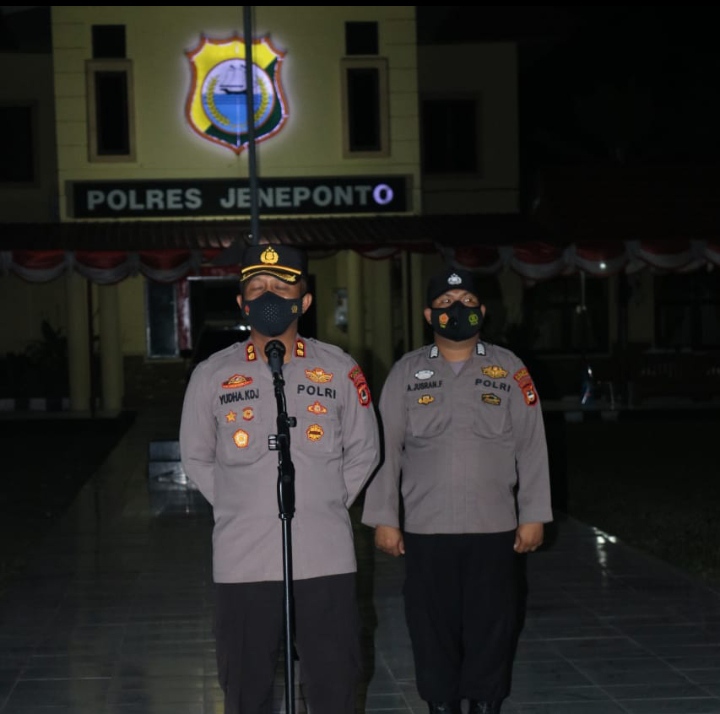 Apel tersebut dipimpin langsung oleh Kapolres Jeneponto AKBP Yudha Kesit Dwijayanto, SH, S.I.K di Halaman Mapolres Jeneponto, (Senin 19/7/2021) malam.