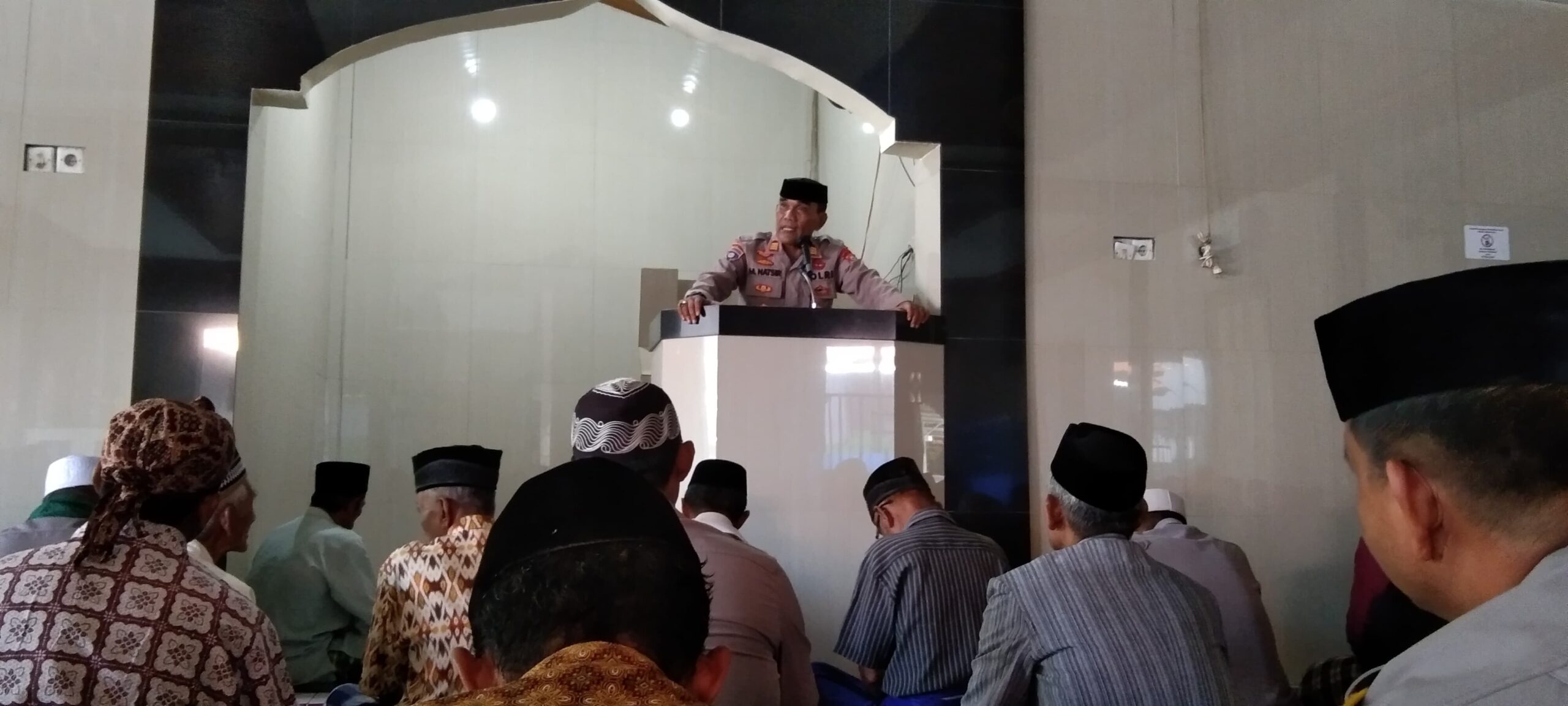 Usai salat Jumat, AKP M. Natsir menyampaikan pesan-pesan kamtibmas kepada jamaah dalam suasana dialogis dan penuh keakraban.