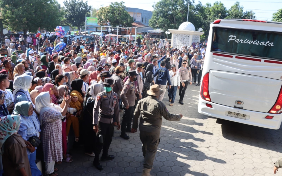 PENJURU. ID | Jeneponto – Polres Jeneponto Polda Sulawesi melaksanakan pengamanan menyambut kepulangan jamaah haji asal Jeneponto. Para personel disiagakan di lokasi kedatangan Jamaah Haji di Masjid Agung, Kabupaten Jeneponto, Sabtu (20/07/2024).