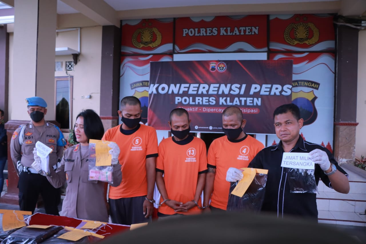 PENJURU.ID|Klaten – Jimat keberuntungan yang dibawa PS, EA dan IA ternyata tidak bisa membuat mereka luput dari sergapan polisi. 3 pria asal Yogyakarta ini ditangkap Polres Klaten usai melakukan aksi pencurian di Toko Terang Swalayan Kec. Karanganom.