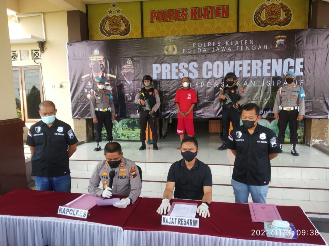 “Modusnya, tersangka menghilangkan nyawa korban dengan menebarkan racun,” jelas Kapolres saat konferensi pers di Mapolres Klaten, Rabu, (3/11/2021).