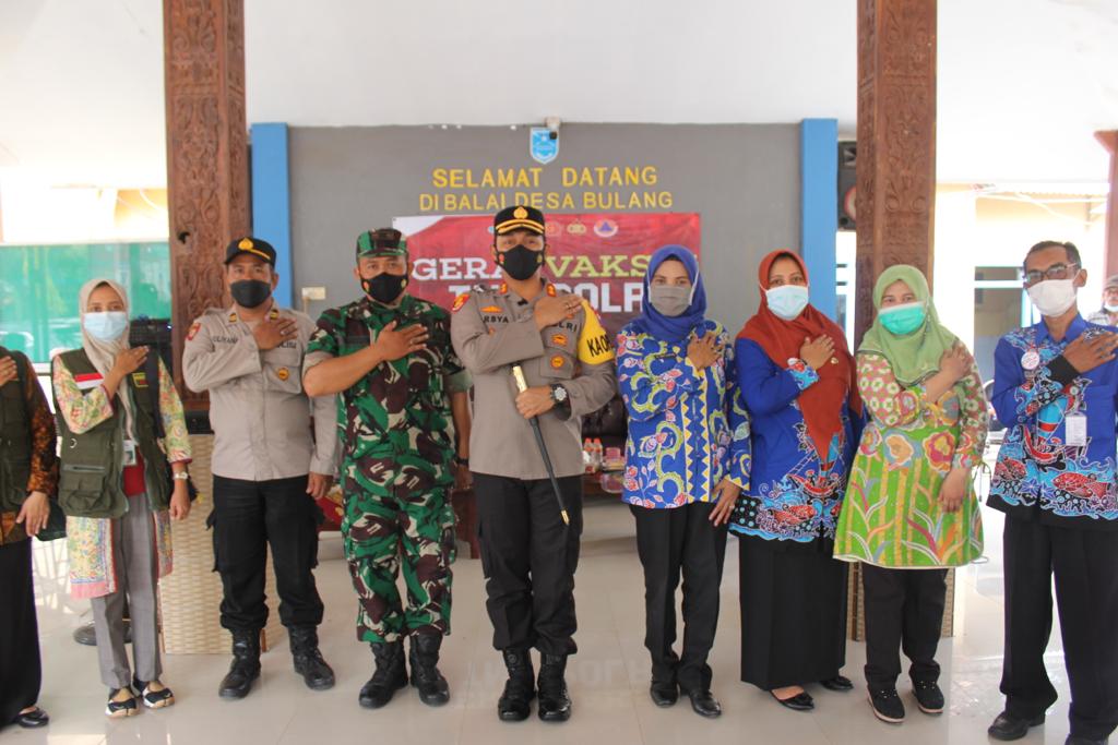 “Hari ini Polres Probolinggo menggelar vaksinasi serentak di Desa Bulang Kecamatan Gending Kabupaten Probolinggo, bersinergi dan berkolaborasi bersama TNI dan Pemerintah Kabupaten Probolinggo dalam rangka strategi mensukseskan program percepatan vaksinasi. Alhamdulillah, selama tahun 2021 Polres Probolinggo telah berpartisipasi dengan menyuntikkan 77.240 dosis vaksin, ucap,” Kapolres Probolinggo AKBP Teuku Arsya Khadafi.