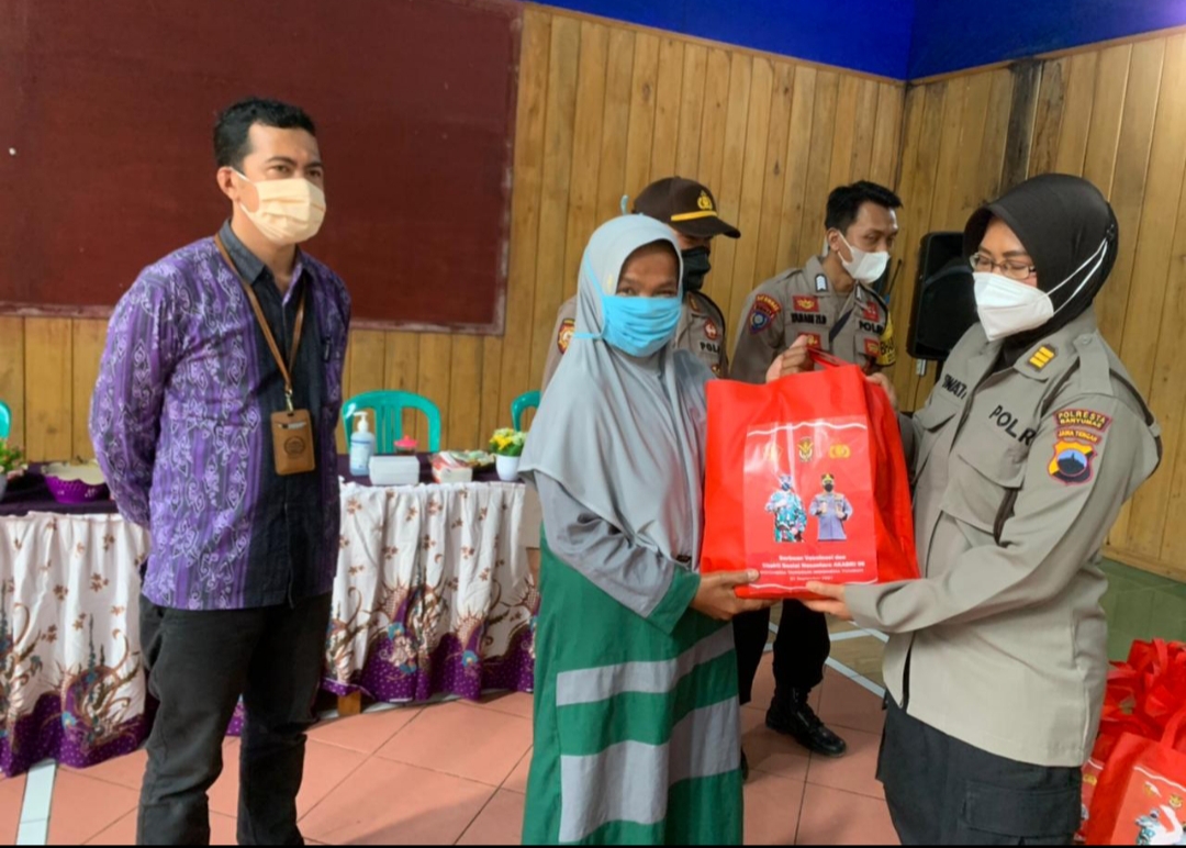 PENJURU.ID | BANYUMAS – Perduli Warga masyarakat Polresta Banyumas menyalurkan bantuan Sosial, pada warga masyarakat yang Terdampak Pandemi Covid-19 di kantor/Balai Desa Cibangkong, Kecamatan Pekuncen, Kabupaten Banyumas.(13/10/2021).