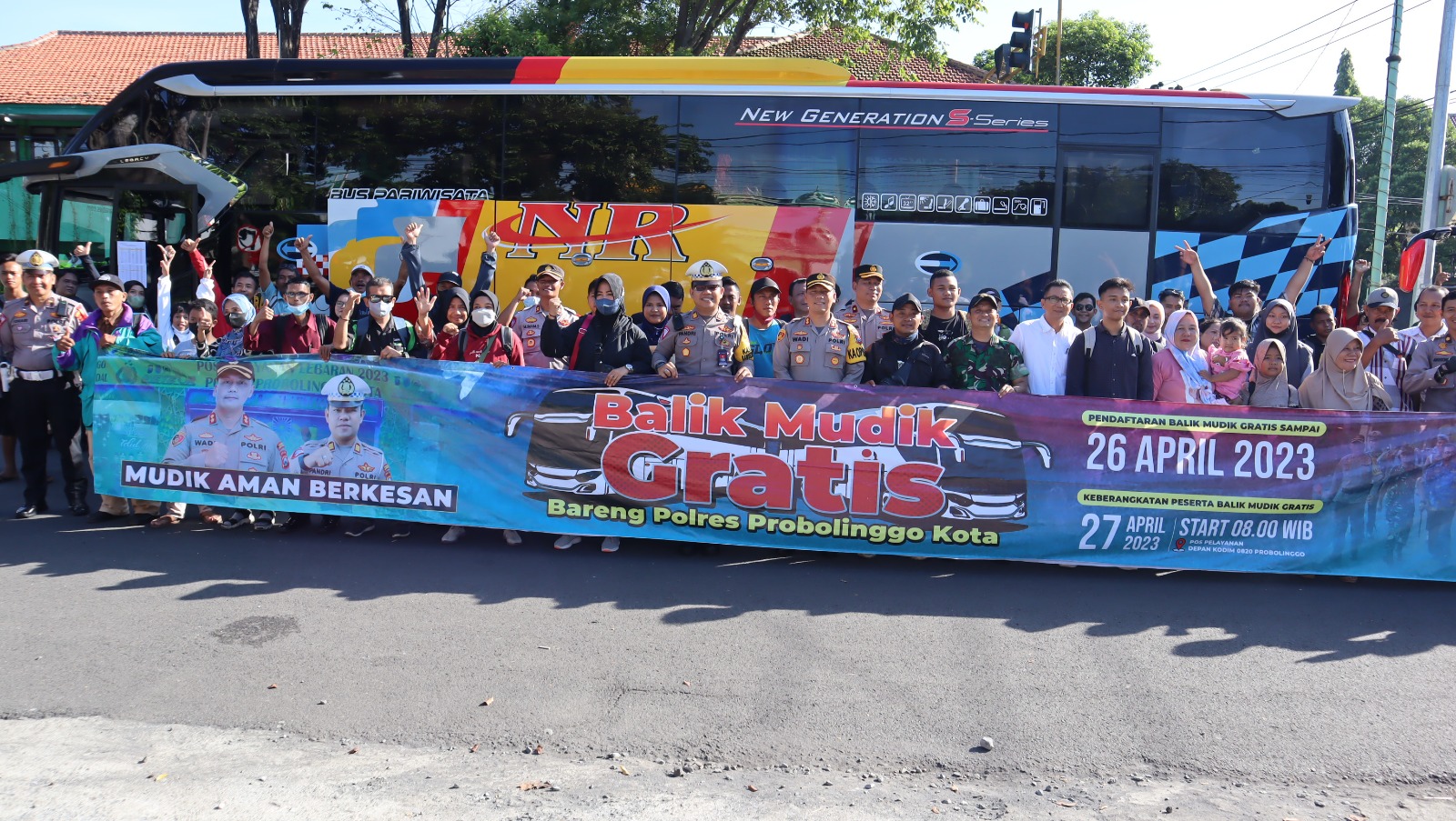 PENJURU.ID | Probolinggo – Polres Probolinggo Kota berikan fasilitas Balik Mudik Gratis Jurusan Probolinggo – Surabaya dengan titik pemberangkatan di Pos pelayanan Ops. Ketupat Semeru depan Kodim 0820 Prorbolinggo, Kamis (27/04/23) pagi.