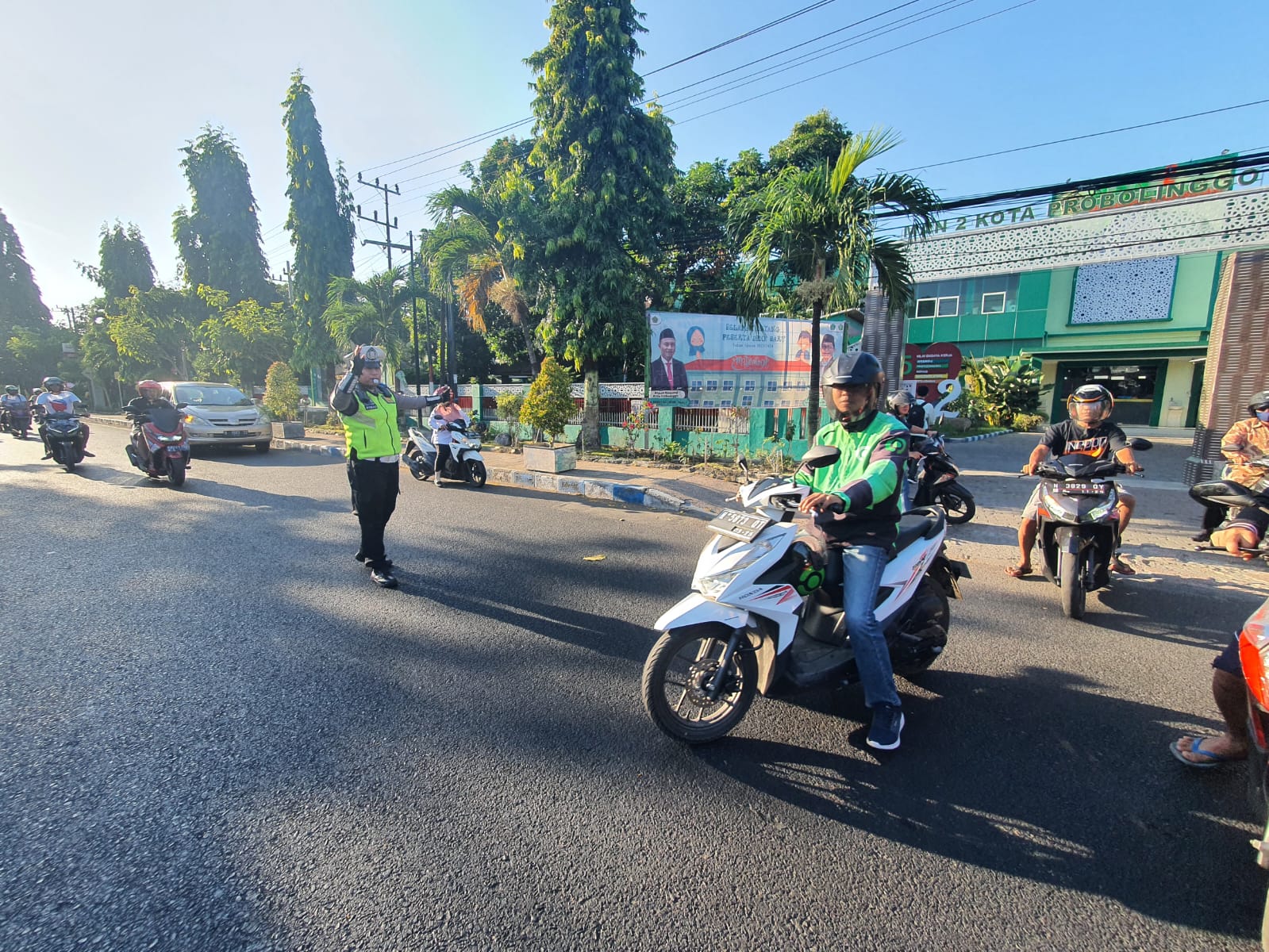 Menyikapi hal tersebut maka anggota satlantas polres probolinggo Kota memberlakukan kegiatan Poros pagi.
