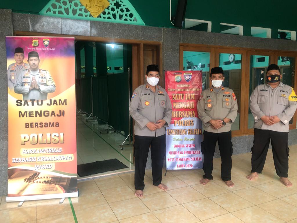 Pada kesempatan tersebut Kasubditbinsatpam/Polsus, AKBP JAJANG HASAN BASRI. S.AG. M.Si menyampaikan bahwa Kegiatan mengaji satu jam bersama Polri di laksanakan dalam rangka cooling Sistem menjelang Pemilukada serentak di Tangsel 2020 desember mendatang.