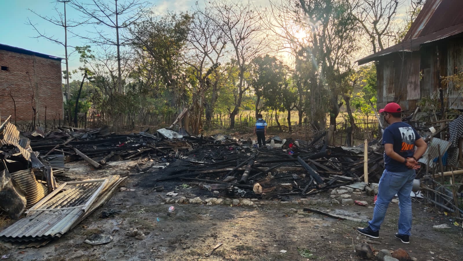 PENJURU. ID | Jeneponto – Personil Polsek Bangkala Mendatangi TKP Kebakaran 2 (dua) unit rumah panggung di Dusun Baji Pa’mai,