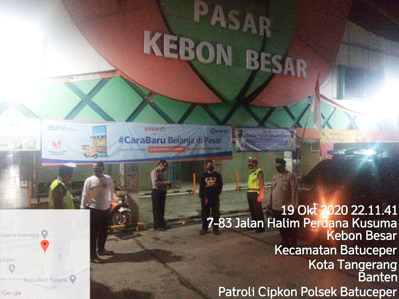 PENJURU.ID | KOTA TANGERANG – Polsek Batu Ceper Polres Metro Tangerang Kota menggelar Patroli Biru dan Cipta Kondisi (Cipkon) cegah Kamtibmas, ciptakan situasi masyarakat yang kondusif dan himbauan Adaptasi Kebiasaan Baru (AKB) serta pelaksanaan Standar Protokol Kesehatan (Prokes) di wilayah hukum Polsek Batu Ceper. Senin malam, (19/10/2020) pukul 22.00 s.d 24.00 WIB.