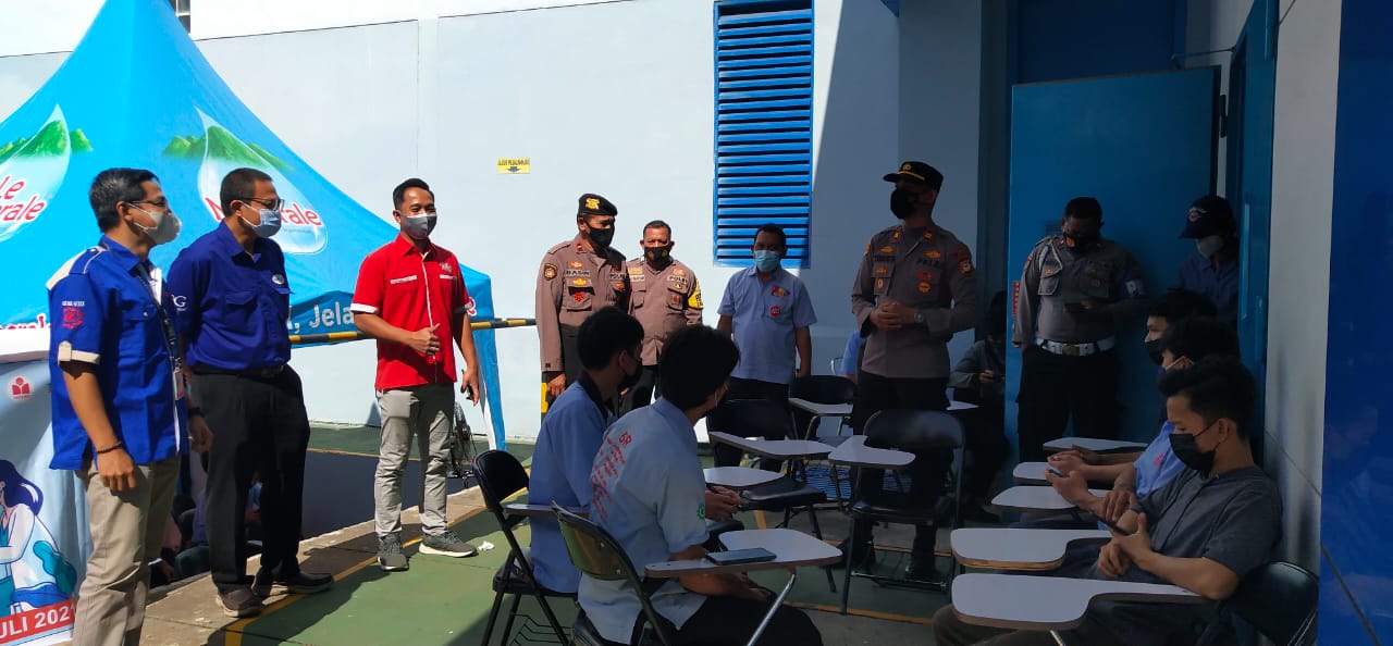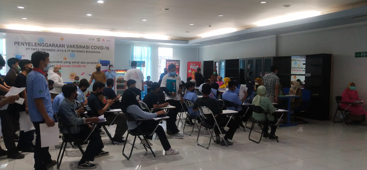 Kegiatan vaksin massal yang diselenggarakan oleh PT Tirta Fresindo Jaya dan PT Nutrindo Bogarasa bekerja sama dengan Dinas Kesehatan Kabupaten Gowa bersama Puskesmas Bontomarannu.