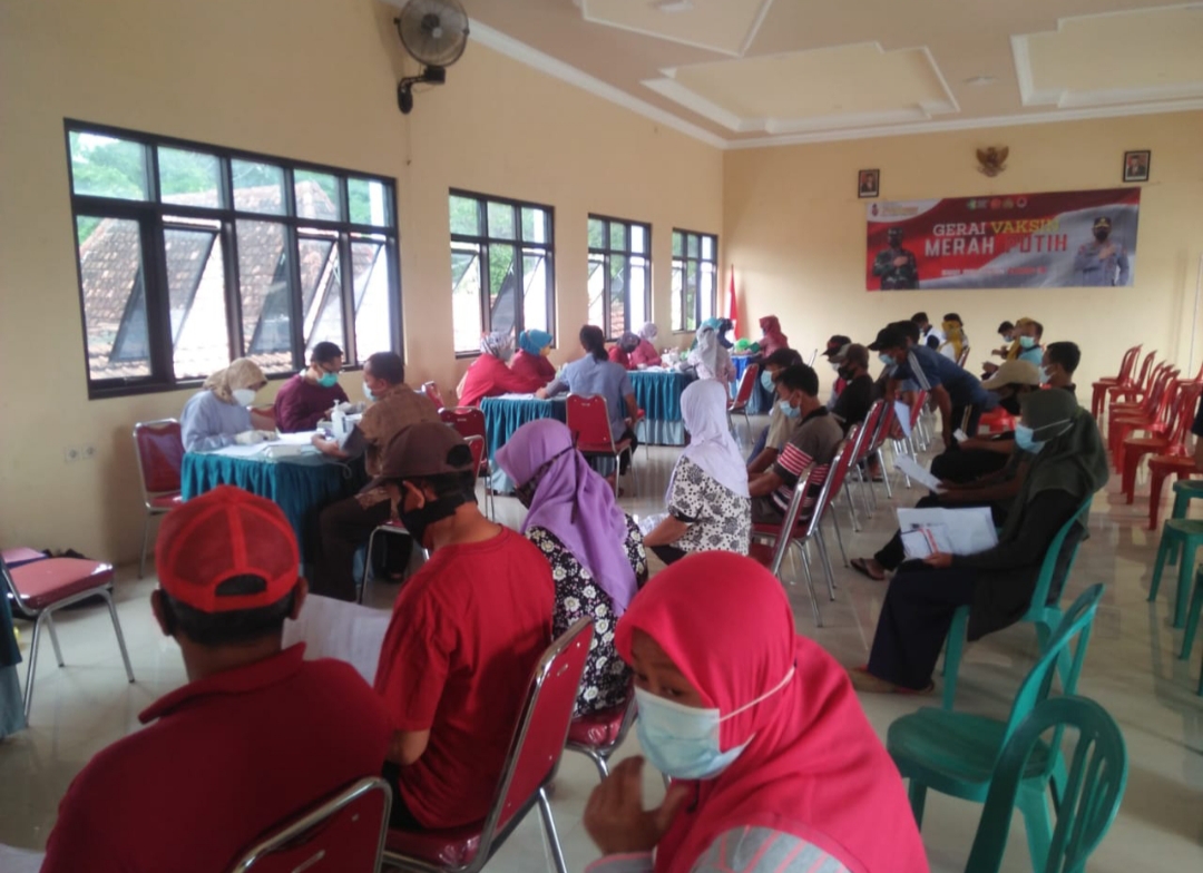 PENJURU.ID |Ponorogo – Kapolsek Bungkal, AKP. Suroso mengunjungi secara langsung pelaksanaan vaksinasi sinovac dosis 2 bagi masyarakat. Kali ini Kapolsek Bungkal, mengunjungi vaksinasi yang bertajuk Gerai Vaksin Merah Putih di Balai Desa Bancar, Kecamatan Bungkal, Kabupaten Ponorogo, Jatim, Senin (1/11/2021).