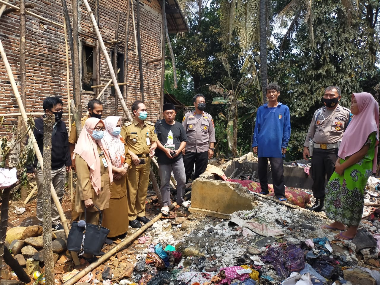 Penjuru.id. Kabupaten Serang. Kapolsek Cinangka Polres Cilegon Polda Banten bersama unsur pemerintahan Kab. Serang diwakilkan Camat Cinangka memberikan bantuan kepada Warganya yang tertimpah musibah Kebakaran rumah pada hari Minggu kemarin dan dengan Kapolsek Cinangka bersama Camat Cinangka langsung memberikan bantuan berupa sembako, Rabu 25/8/2021.