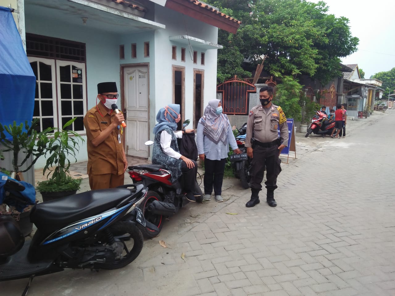 PENJURU.ID | Kota Tangerang – Polsek Cipondoh Polres Metro Tangerang Kota melalui Unit Bhabinkamtibmas Wilayah Kel. Kenanga, AIPTU Suhandi bersama 3 Pilar menggelar Operasi Aman Bersama Penegakan Disiplin PSBB (Protokol Kesehatan Covid-19) bertempat di Jalan Gg.Sabar Rt.05 Rw 02 Perumahan LDII Kel. Kenanga, Kec.Cipondoh, Kota Tangerang. Jumat (16/10/2020) Pukul 15.00 WIB s/d 16.00 WIB.