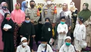 Acara pengajian dan santunan tersebut diikuti oleh anak-anak yatim piatu dari sekitar lingkungan Mako Polsek Cipondoh sebanyak 40 orang anak dengan tetap memperhatikan dan mematuhi protokol kesehatan Covid – 19.