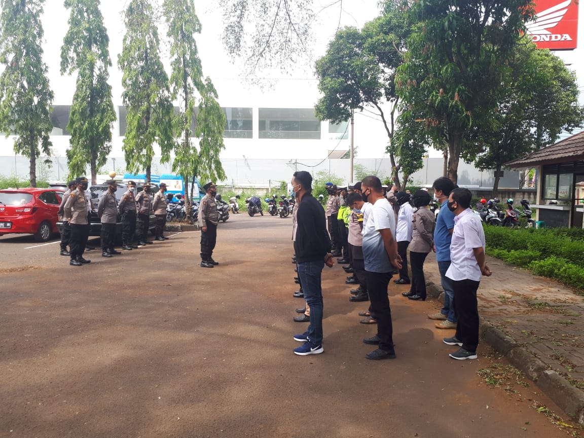 Sebelum pengamanan aksi, segenap personel melakukan Apel di Halaman Kantor Dinas Kependudukan dan Catatan Sipil Disdukcapil Kota Serang.