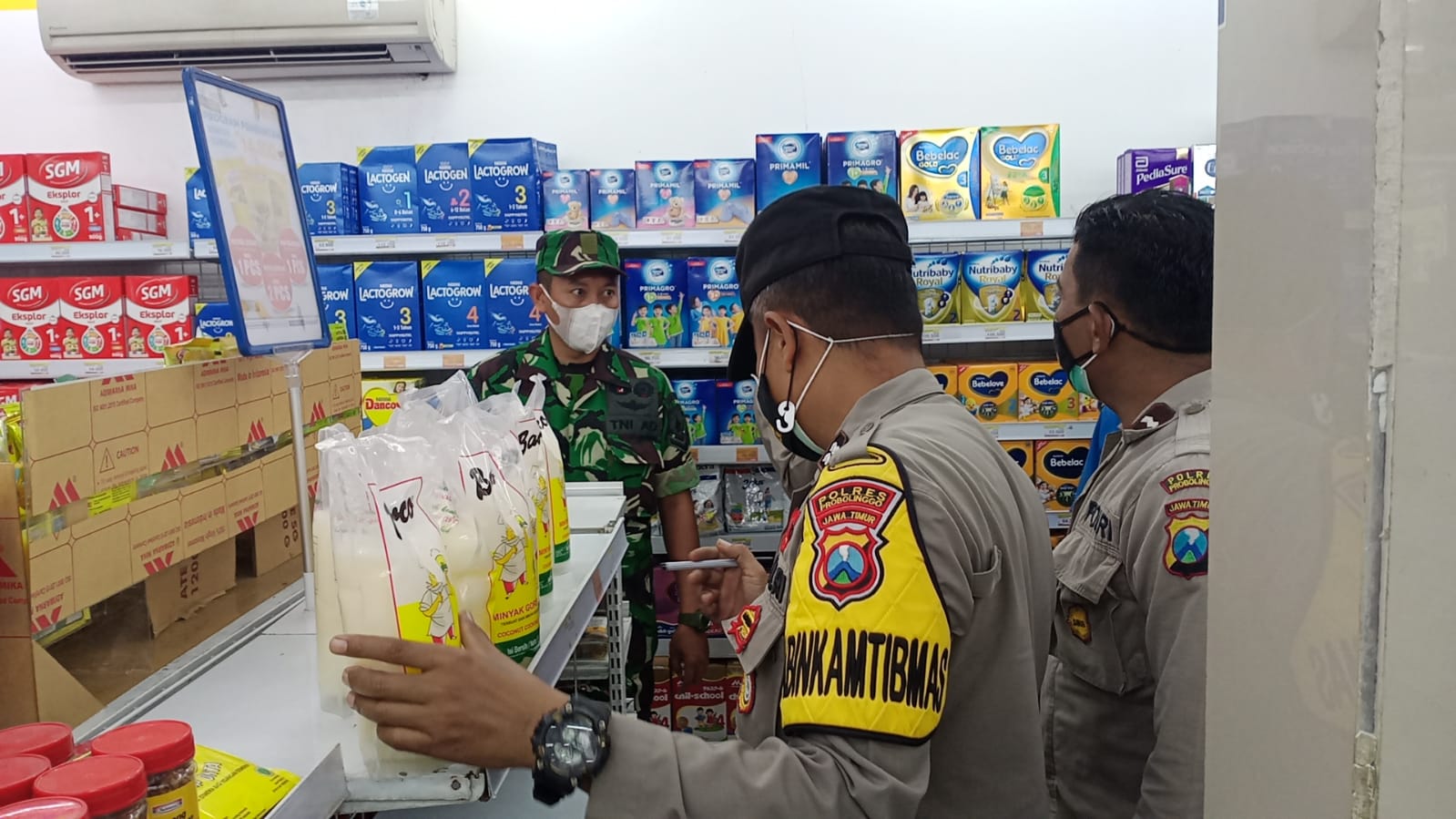 “Polsek Sukapura bersama Koramil Sukapura, melakukan koordinasi dan pengecekan setok minyak goreng agar kebutuhan minyak goreng di wilayah Kecamatan Sukapura bisa tercukupi, untuk tempat yang dicek yaitu, Indomaret Sukapura, Alfa Mart Sukapura, pasar tradisional Sukapura serta beberapa toko yang ada disekitar pasar Sukapura, jelas,” Kanit Binmas Polsek Sukapura, Aiptu. Ichwan Purbo.