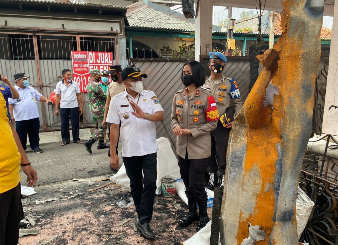 PENJURU.ID | Tanjung Duren, Jakarta Barat – Kepolisian Sektor (Polsek) Tanjung Duren bersama tiga pilar melaksanakan apel kerja bakti membersihkan puing-puing di area pascakebakaran yang terjadi di Jl. Makaliwe II Gg. 3 Rt. 03/08 dan Gg. 4 Rt. 04/08 Kel. Grogol, Jakarta Barat, Rabu, (27/10/2021).