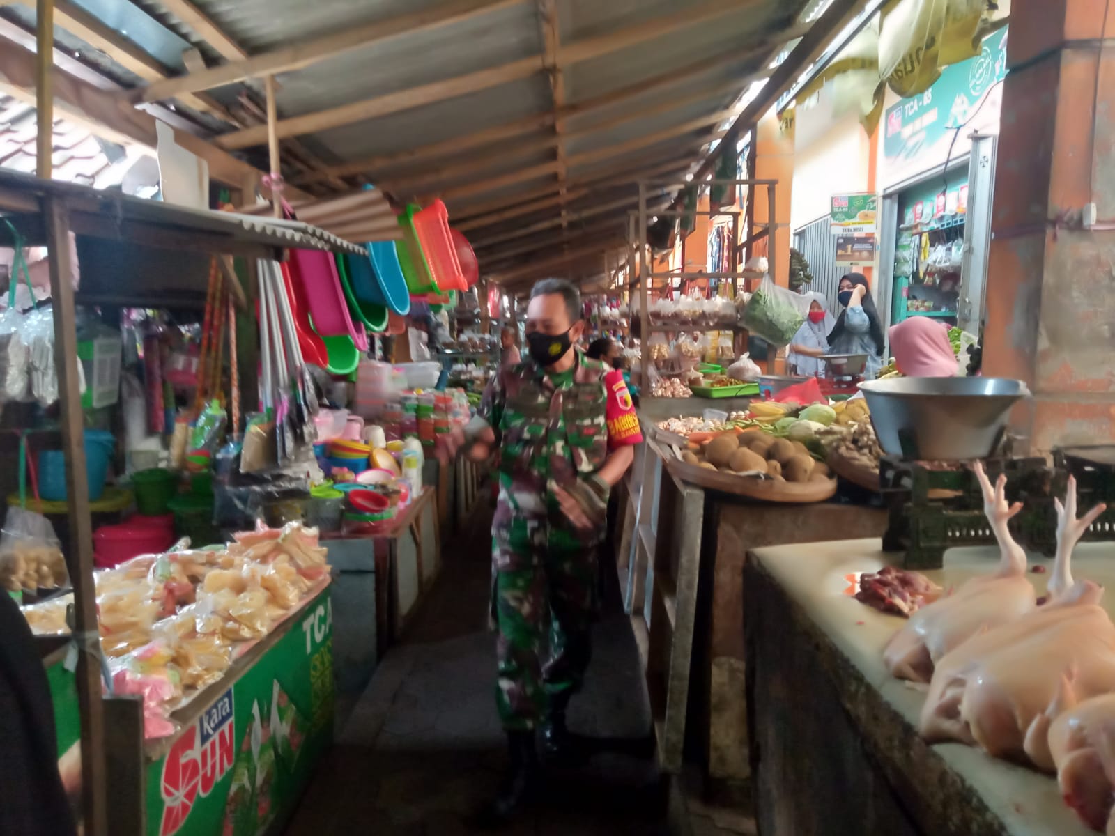 PENJURU.ID | Probolinggo – Koramil 0820/22 Dringu, bersama satgas covid memberlakukan pembatasan kegiatan masyarakat (PPKM) level II dengan melaksanakan operasi yustisi sekaligus memberikan sosialisasi dan edukasi berkaitan dengan penegakan dan penerapan protokol kesehatan di pasar tradisional setempat. Kamis (23/12/2021).