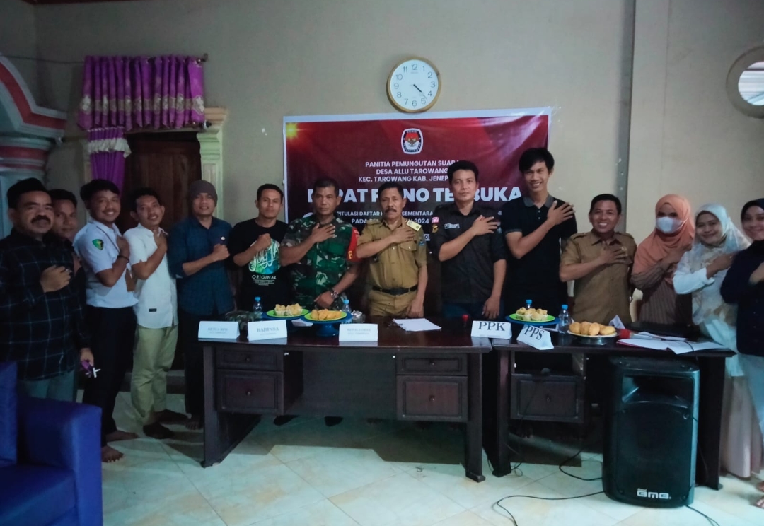 Rapat Pleno Terbuka dihadiri Kepala Desa Allu Tarowang dan Jajaran Pemerintah Dusun, Ketua PPK Tarowang, Ketua PPS dan beberapa timnya serta turut dikawal Ketua Panwascam Tarowang.