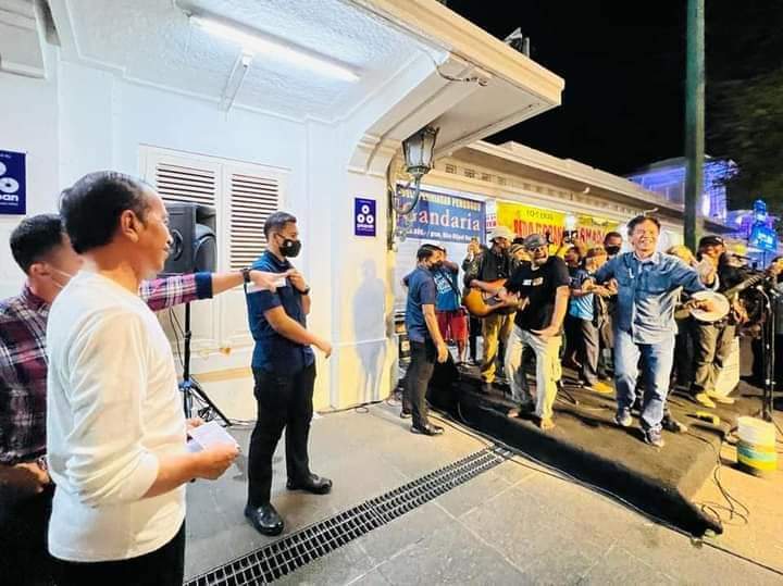 Presiden juga sempat menyaksikan penampilan seniman jalanan di kawasan Malioboro pada saat itu menyanyikan lagu yang berjudul “Ojo Dibanding-bandingke.