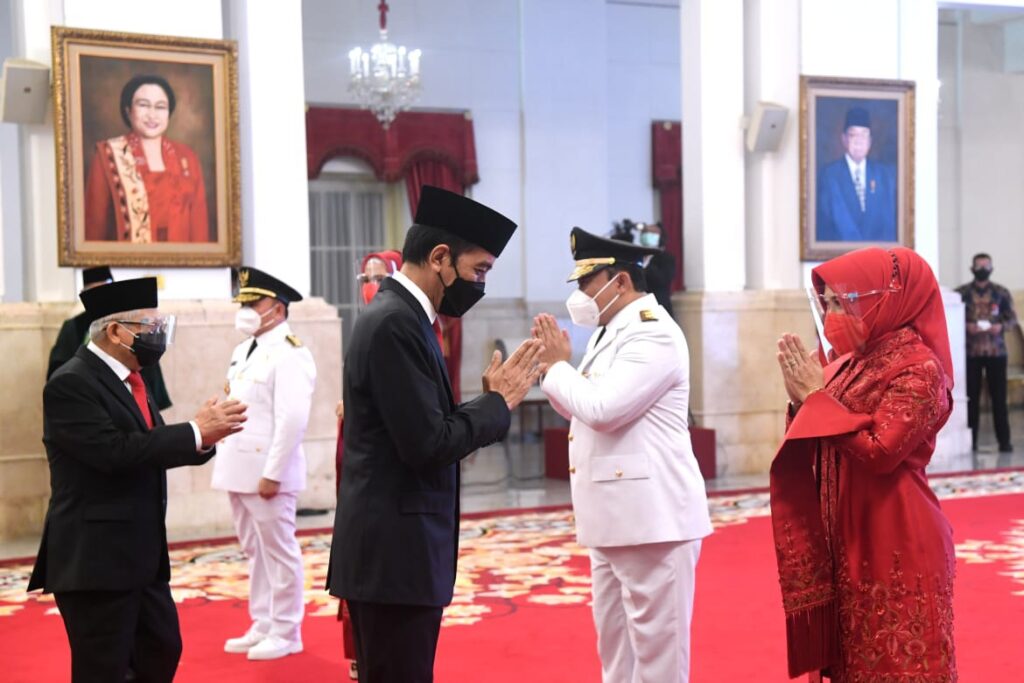 PENJURU.ID | Jakarta – Presiden Joko Widodo melantik dan mengambil sumpah Sugianto Sabran dan Edy Pratowo masing-masing sebagai Gubernur dan Wakil Gubernur Kalimantan Tengah masa jabatan tahun 2021-2024. Acara pelantikan berlangsung dengan menerapkan protokol kesehatan secara ketat di Istana Negara, Jakarta, pada Selasa, 25 Mei 2021.