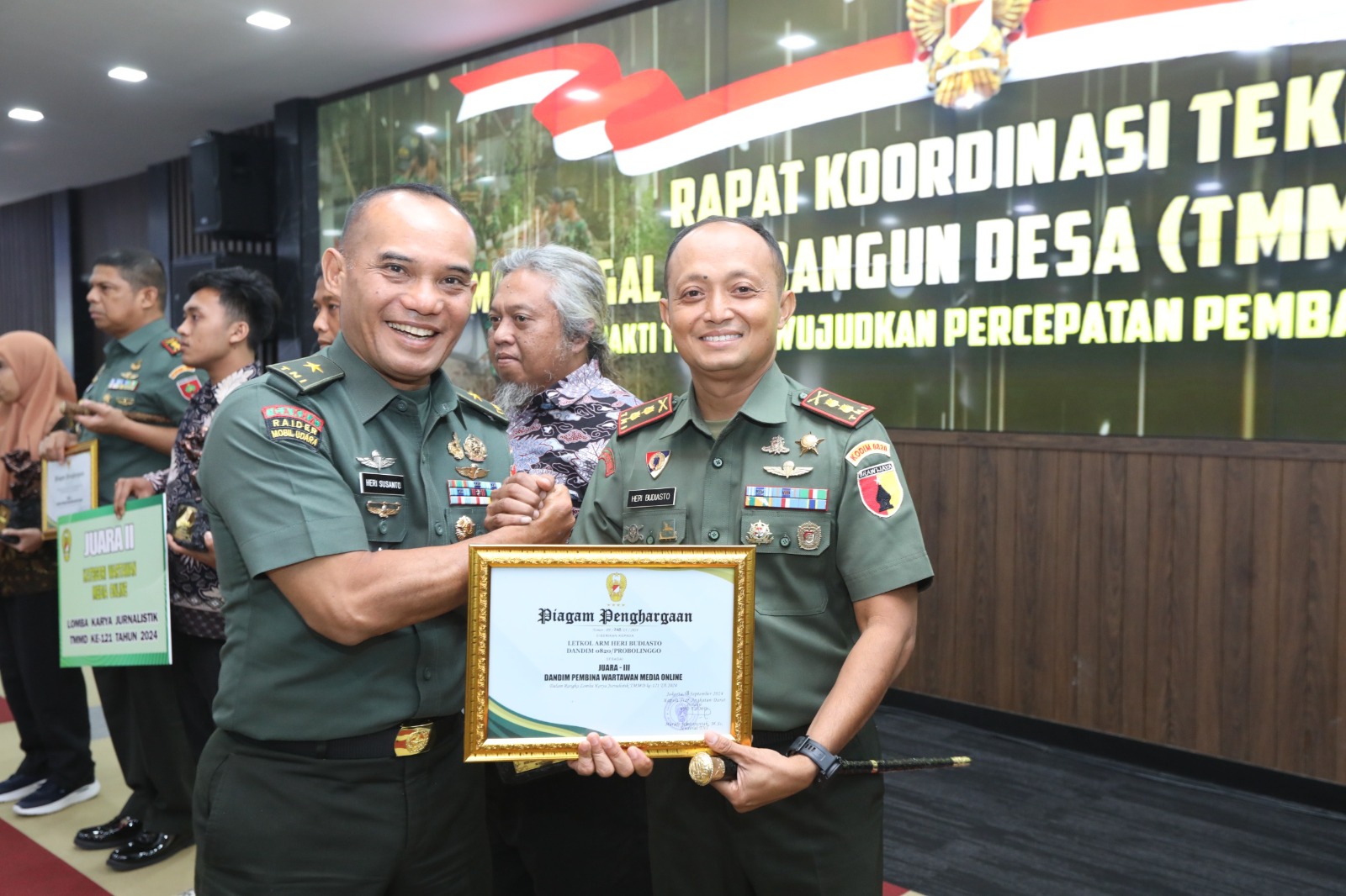 Penghargaan ini diserahkan oleh Aster Kasad, Mayjen TNI Joko Hadi Susilo yang mewakili Kepala Staf Angkatan Darat (Kasad) Jenderal TNI Maruli Simanjuntak.