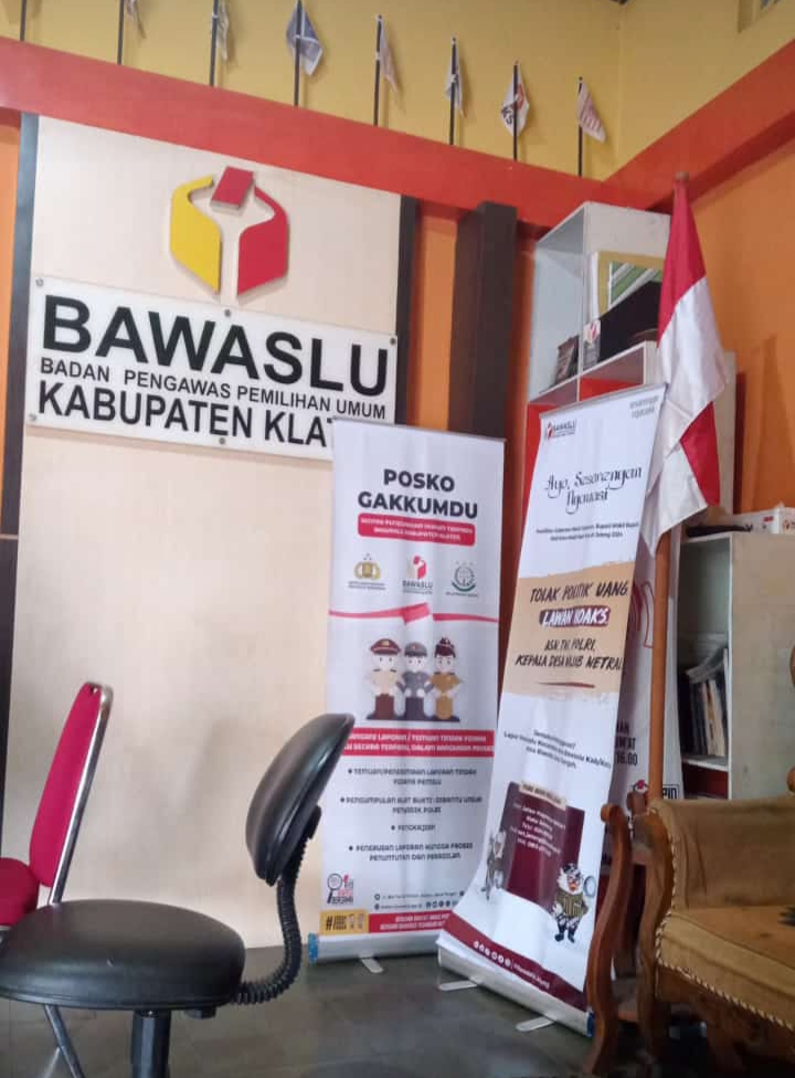 Sidang hari pertama pemanggilan penggugat dan menghadirkan para saksi dari kubu paslon nomor urut 01, sidang di lakukan di Ruang GAKUMMDU BAWASLU Kabupaten Klaten secara tertutup.
