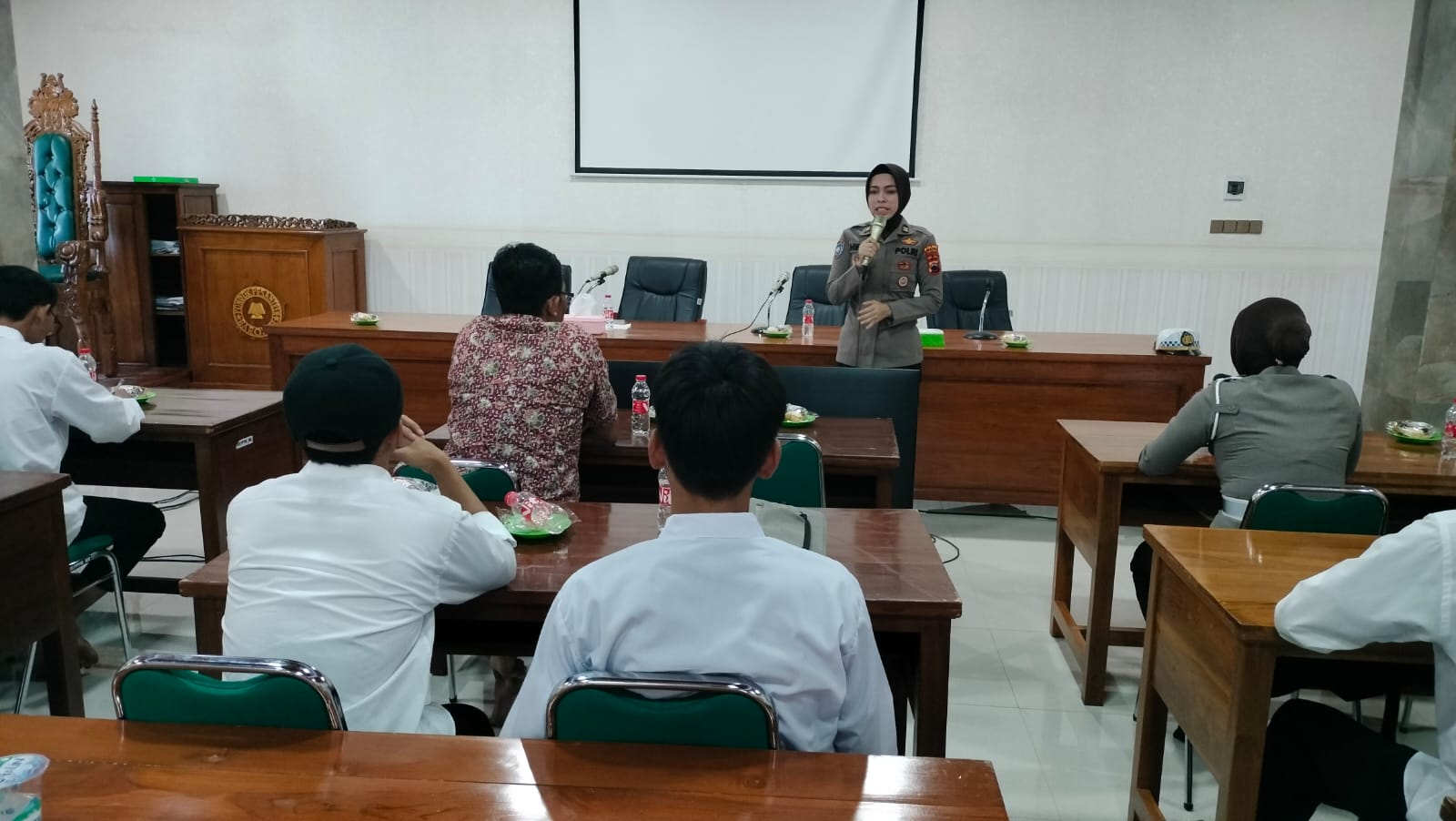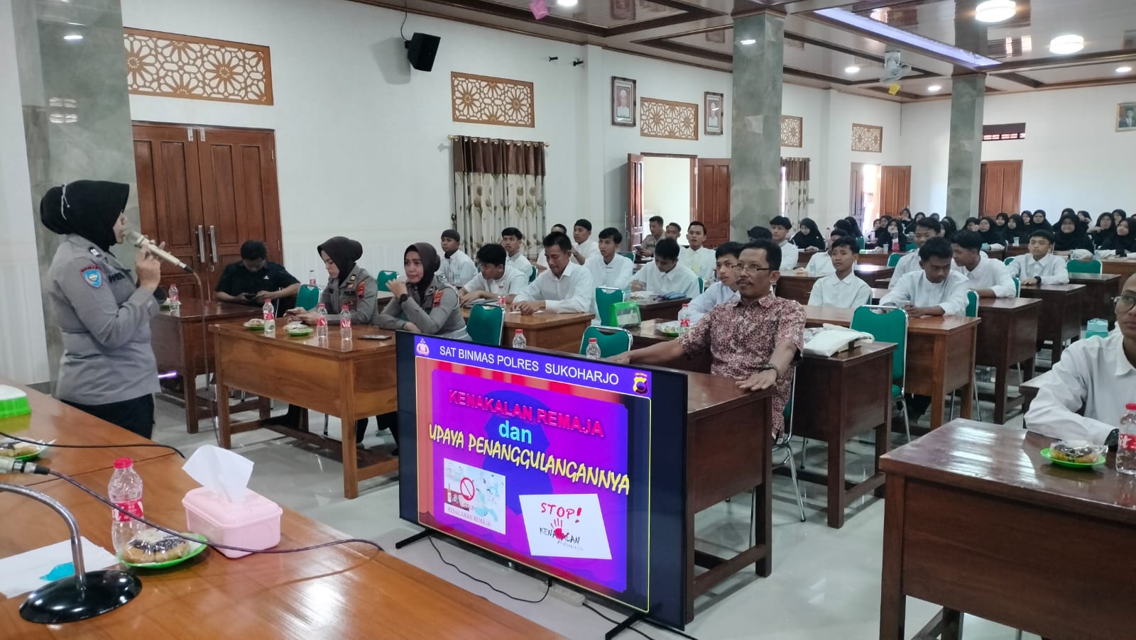 PENJURU.ID|Sukoharjo – Polisi Sukoharjo memberikan penyuluhan kenakalan remaja dan tertib berlalu lintas kepada santriwan dan santriwati pondok pesantren barokah LDII Nandan, Bendosari.