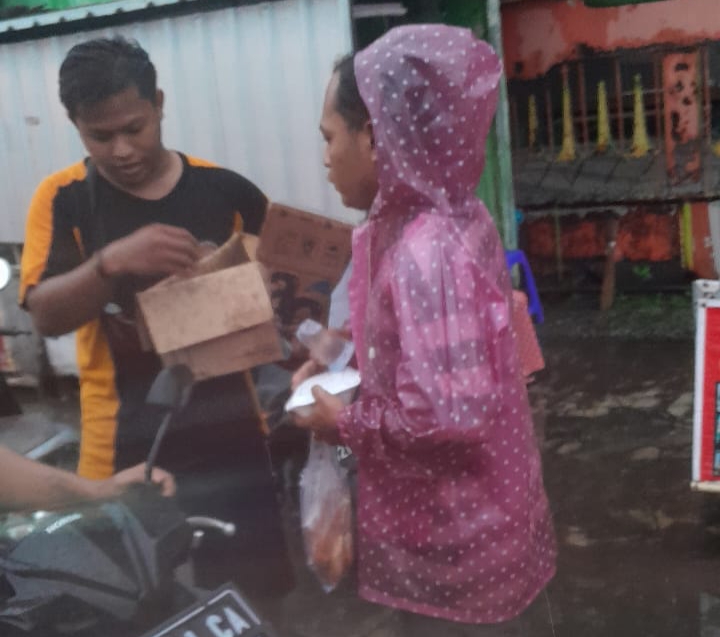 “Bahkan dalam guyuran hujan warga makam Bergolo tetap semangat membagikan takjil kepada penguna jalan yang melintas, tak butuh waktu lama 150 takjil habis dibagikan kepada pengguna jalan yang masih melakukan aktivitas menjelang berbuka puasa,” katanya