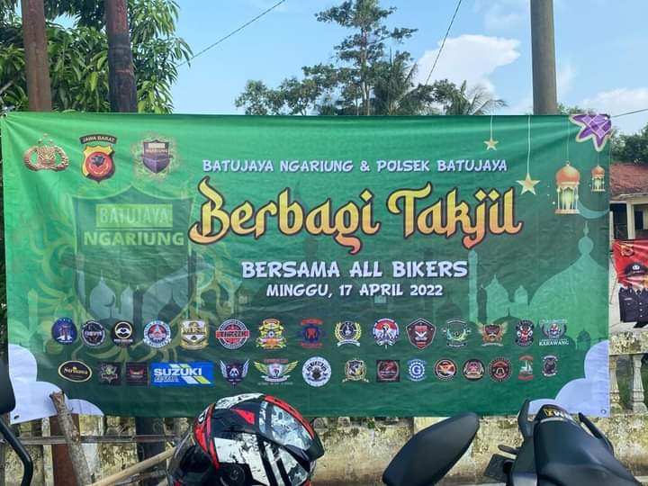 PENJURU.ID | Batujaya |Batujaya ngariung (BN) salah satu wadah komunitas motor yang menaungi berbagai komunitas motor, mulai dari Bekasi hingga Karawang. melaksanakan kegiatan berbagi takjil yang diselenggarakan di depan Kantor Polsek Batu Jaya, Kabupaten Karawang. Minggu, (17/04/2022) sore.